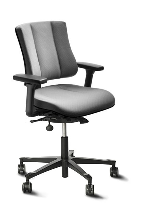 De Höganäs+ 401 is een van de bureaustoelen die vaker als de oplossing naar voren komt om rugproblemen of andere fysieke klachten te verhelpen tijdens een adviesafspraak. Met deze bureaustoel kunnen we je stimuleren tot het aannemen van een rechtop zittende werkhouding en je goed ondersteunen. De manier waarop de stoel beweegt draagt daar onder andere aan bij: in iedere positie houd je contact met de rugleuning. De rugleuning is in hoogte en hoek verstelbaar en kan worden voorzien van een opblaasbare lumbaalsteun.